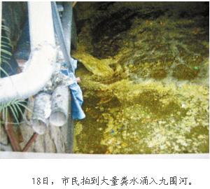 昨日上午,記者來(lái)到寶安西鄉(xiāng)九圍河路段,雖然經(jīng)過(guò)整日的暴雨沖刷,河道內(nèi)已看不到糞便,但仍能聞到一股嗆鼻的臭味。從讀者15日拍攝到的照片上,記者看到金洪工業(yè)區(qū)前邊的橋底下一大一小兩個(gè)管道正在向外傾倒著黃色的液體。其中小管道流量很大,水面上還漂浮著一些生活垃圾。