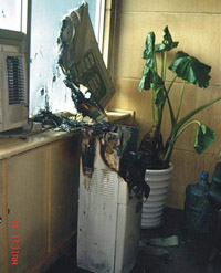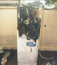 由于美的飲水機的質(zhì)量問題引發(fā)的火災(zāi),上圖為現(xiàn)場焚燒過后的圖片,觸目精心,使人汗顏,為什么美的這么大的牌子還出這種偽劣商品?這個是現(xiàn)場拍攝絕對真是可靠!現(xiàn)在拍出來想告知大家,在選購飲水機的時候要慎重考慮!不要要被那種大牌子大廠家給蒙騙。