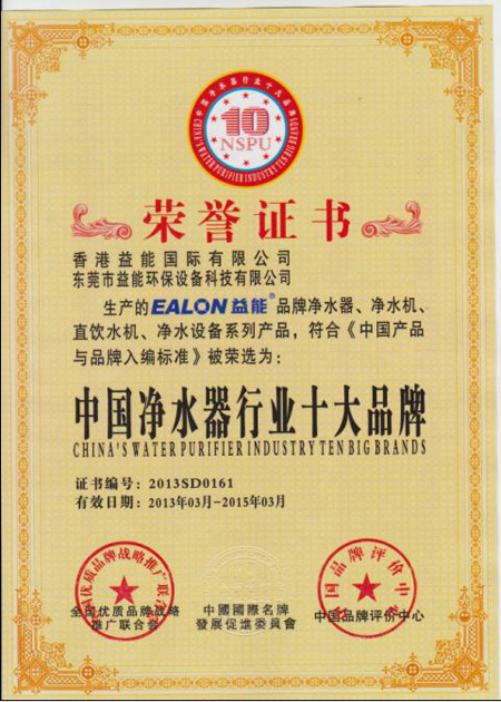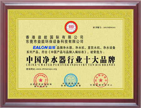 熱烈祝賀香港益能榮獲凈水器十大品牌 。香港益能所生產(chǎn)的EALON益能品牌凈水器、凈水機、直飲水機、凈水設(shè)備系列產(chǎn)品,符合《中國產(chǎn)品與品牌入編標準》被榮選為:中國凈水器行業(yè)十大品牌。